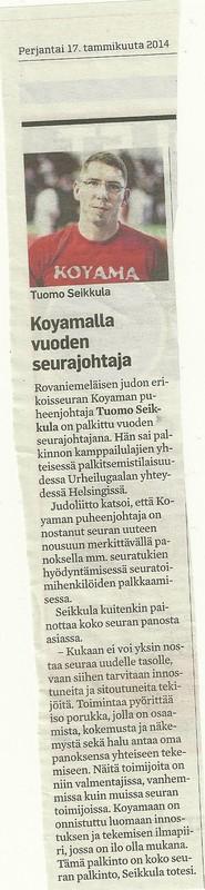 Tuomo Seikkula palkittiin Urheilugaalassa Judoliiton Vuoden seurojohtajana 2013 (13.1.2014)